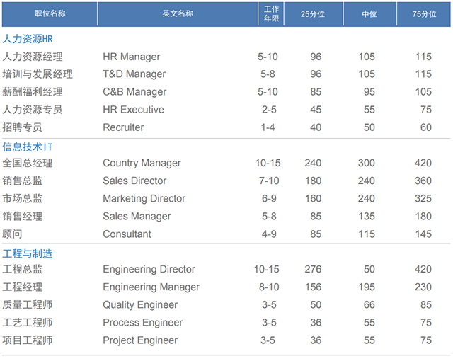 25分位值:表示有25%的数据小于此数值,反映科猎头公司锐国际信息库的较低端水平